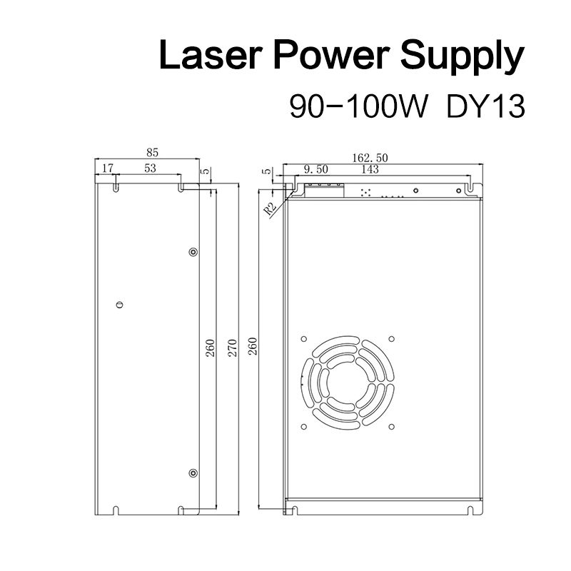 به دنبال یک منبع تغذیه قابل اعتماد برای دستگاه برش یا حکاکی لیزر CO2 خود هستید؟ HY-DY13 یک منبع تغذیه لیزر 100W است که سازگاری، پایداری و ویژگی‌های محافظت هوشمند برتر را ارائه می‌دهد. این منبع تغذیه که برای کار با تیوب‌های لیزر محبوب مانند RECI، EFR و Yongli طراحی شده است، ارتقاء کاملی برای دستگاه لیزر شما است.